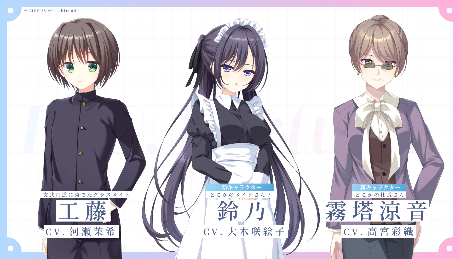 過去の『D.C. ~ダ・カーポ~』シリーズにも登場した「工藤」、そして本作からの新キャラクター「鈴乃」と「霧塔涼音」の情報を解禁しました!